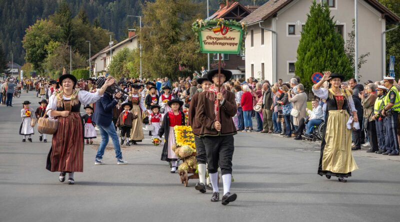 • 10.00 Uhr: Großer Trachtenumzug von Kötschach zum Festgelände – ein farbenfrohes Spektakel, das die Traditionen der Region hochleben lässt.
