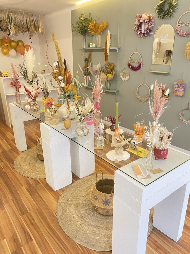 Die Einzigartigkeit des Flower Studios liegt nicht nur in seiner exklusiven Lage, sondern vor allem in seinem außergewöhnlichen Angebot und der persönlichen Note, die Inhaberin Tamara in jedes Detail einfließen lässt. Als Ein-Frau-Unternehmen übernimmt sie nicht nur die Geschäftsführung, sondern auch sämtliche kreative Prozesse, von der Auswahl der Trockenblumen bis zur Verzierung von Brautsträußen mit Epoxidharz und der Gestaltung von Hochzeitsdekorationen und Adventskränzen.