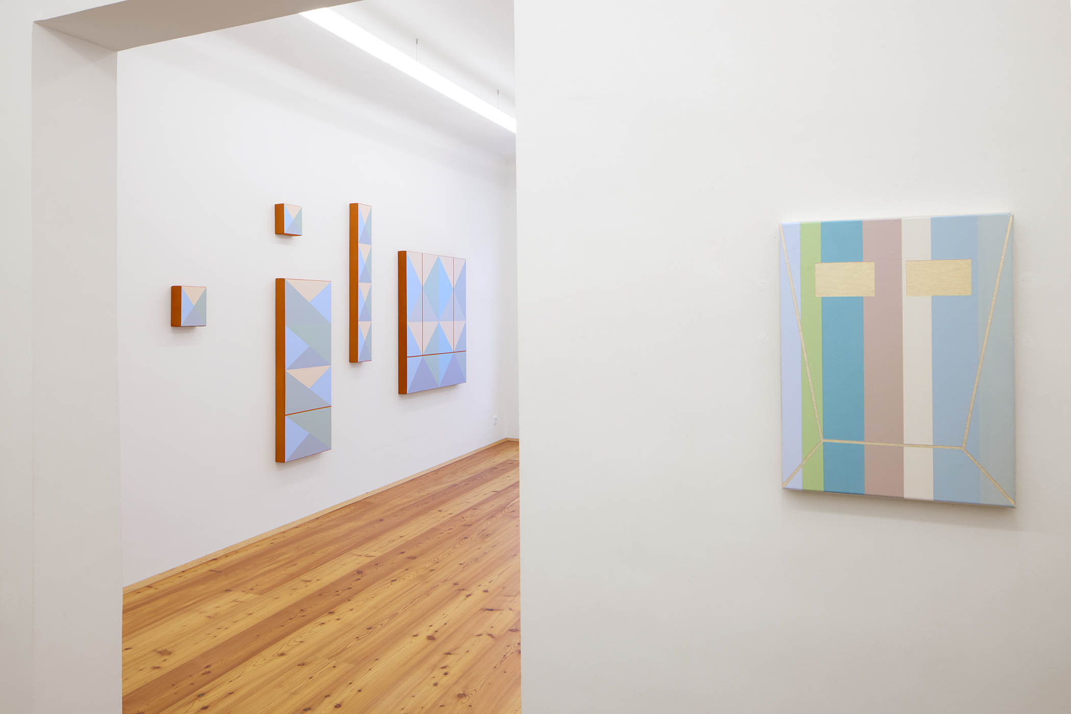 Der gebürtige Klagenfurter, dem das Museum Moderner Kunst Kärnten 2023 eine große Museumsschau widmete, arbeitet mit höchster Präzision. Seine Bildkörper – zwischen klassischem Tafelbild und raumgreifender Installation – wirken auf den ersten Blick streng komponiert. Doch hinter der reduzierten Formensprache öffnen sich persönliche Bezüge, Anklänge an Popkultur, Film oder Literatur. Klare Konzepte und eine feine Farbpalette schaffen Raum für offene Erzählungen, die betrachtet, entschlüsselt und mitgedacht werden wollen.