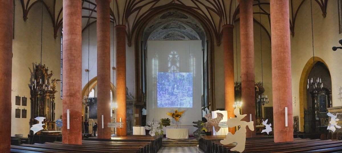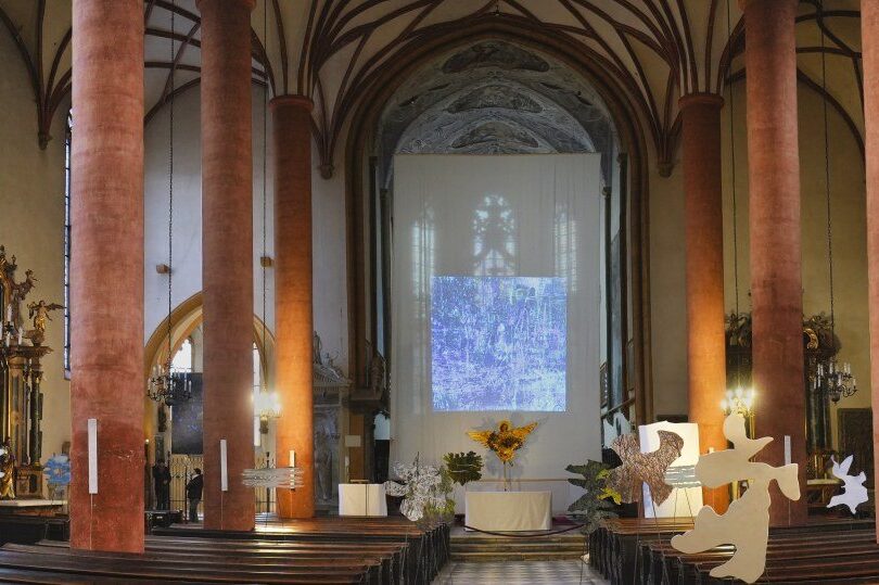 In der Stadthauptpfarrkirche St. Jakob ist bis Karfreitag eine Kunstinstallation zu sehen, die von zwei Schwerpunkten getragen wird.