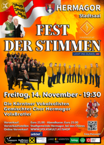 Am Freitag, 14. November 2025, erklingen im Stadtsaal Hermagor wieder starke Stimmen und bekannte Melodien:
