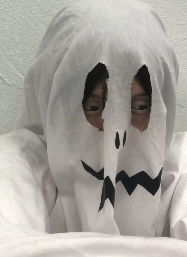 Erst Vorläufer des Kinos im viktorianischen England, in denen gruselige Figuren vor einem Publikum mithilfe von technischen Apparaturen auf Leinwände projiziert wurden, gaben ihnen ihre heutige Erscheinungsform. Eine technische Beschränkung verwandelte sie in die weiß schimmernden Wesen, die uns heute wie ein zeitloses Bild ihrer selbst vorkommen. Angst, das Übernatürliche, verstorbene Seelen. Vorstellungswelten, die sich dem klaren Denken des Tages entziehen, verweisen auf den Schatten einer Lampe, eingebaut in einem zufälligen, aus der Zeit gefallenen Unterhaltungsmedium. Die Menschen, die es entwickelt und betrachtet haben, sind nicht mehr da.