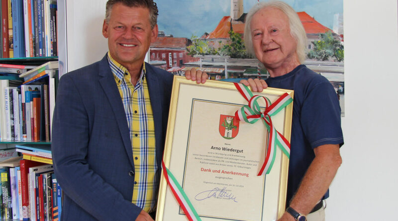 Der langjährige APA-Chefredakteur Arno Wiedergut hat von der Stadt Klagenfurt eine hohe Auszeichnung erhalten. Als Würdigung und Anerkennung seiner besonderen Verdienste und Leistungen im journalistischen Bereich überreichte ihm Bürgermeister Christian Scheider eine „Dank und Anerkennung“-Urkunde.