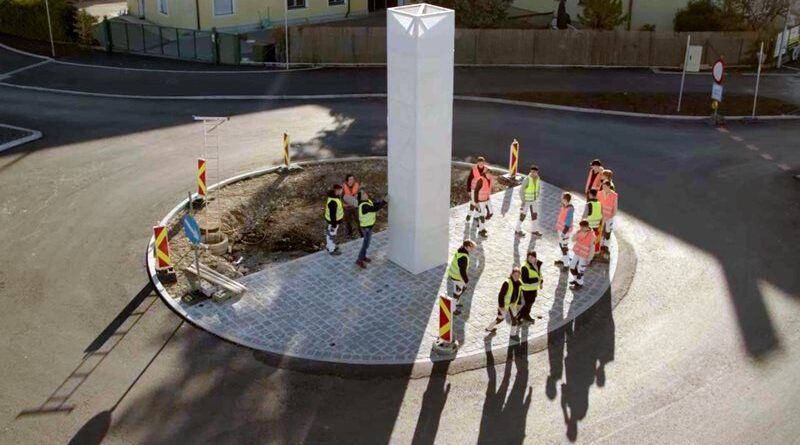 Der neue Kreisverkehr in der Italienerstraße in Villach wird mit einer Skulptur aufgewertet