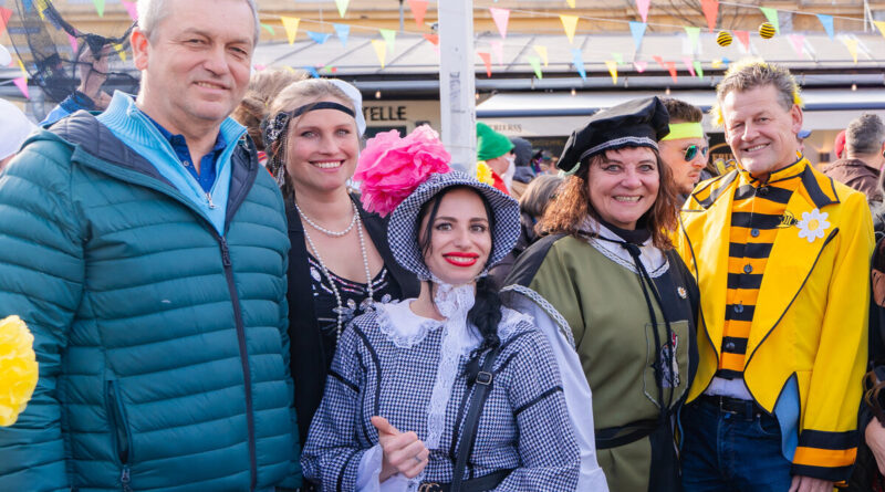 Für einen unvergesslichen Nachmittag mit ausgelassener Stimmung sorgten Klagenfurts Faschingsnarren am Benediktinermarkt. Heuer erstmals in dieser Form feierten Marktreferent Bürgermeister Christian Scheider zusammen mit weiteren Vertretern der Stadtpolitik. Wirtschaftsreferent Max Habenicht, designierte Marktkoordinatorin Martina Derhaschnig, Gabriele Königsberger (Marktamt), Klagenfurt Marketing Geschäftsführerin Inga Horny und Marktreferent Bürgermeister Christian Scheider zelebrierten den Abschluss der heurigen Faschingssaison gemeinsam mit vielen Besucherinnen und Besuchern.