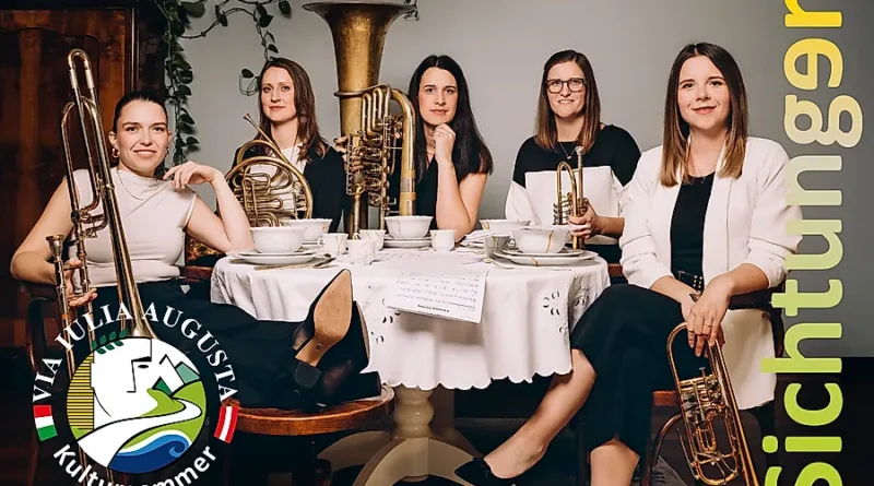 Auch dieses Jahr entfaltet sich der Via Iulia Augusta Kultursommer in den Oberkärntner Gemeinden Kötschach-Mauthen, Dellach im Gailtal und Oberdrauburg. Unter dem Motto „Sichtungen“ verbindet das Festival Musik, Landschaft und Geschichte. International bekannte Künstler sowie aufstrebende Talente zeigen ihr Können und bringen „Musik aus allen Richtungen“ an Orte entlang der alten Römerstraße. Das Programm 2025 umfasst bis Mitte September ein abwechslungsreiches Angebot: originelle Konzertformate, zwei spannende Dokumentarfilme, eine Musiktheaterproduktion für Kinder sowie eine Studienreise in die Europäische Kulturhauptstadt 2025 Nova Gorica/Gorizia. Als nächstes gastiert das österreichische Blechbläserinnen-Ensemble quinTTTonic am Donnerstag, dem 31. Juli um 19:00 Uhr,  mit seinem neuen Konzertprogramm „Zeitgenuss“ im Landeskrankenhaus Laas. Alle weiteren Termine und Orte sind zu finden unter https://www.via-iulia-augusta.at/.  Insgesamt umfasst der Kultursommer noch 9 Programmpunkte.