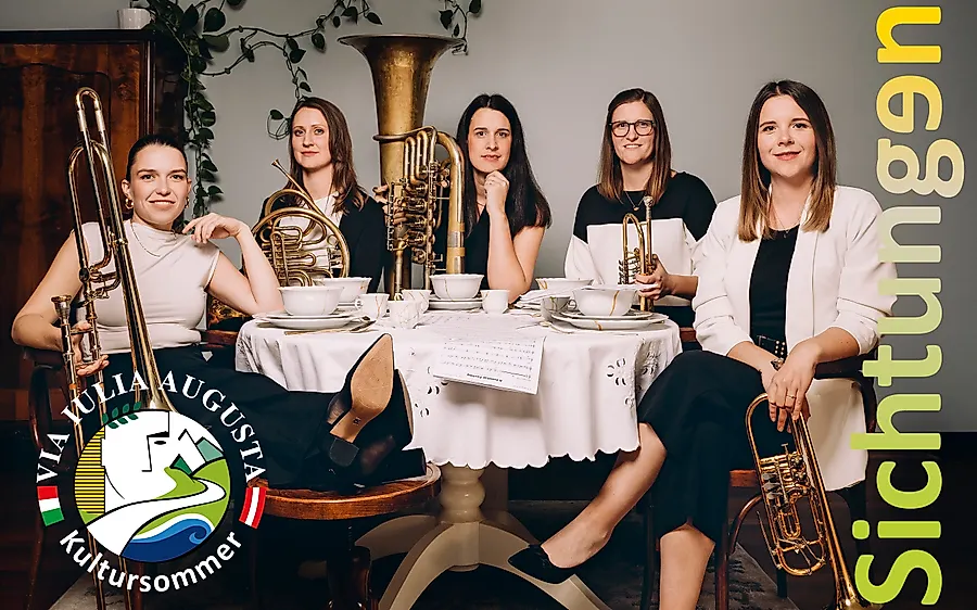 Auch dieses Jahr entfaltet sich der Via Iulia Augusta Kultursommer in den Oberkärntner Gemeinden Kötschach-Mauthen, Dellach im Gailtal und Oberdrauburg. Unter dem Motto „Sichtungen“ verbindet das Festival Musik, Landschaft und Geschichte. International bekannte Künstler sowie aufstrebende Talente zeigen ihr Können und bringen „Musik aus allen Richtungen“ an Orte entlang der alten Römerstraße. Das Programm 2025 umfasst bis Mitte September ein abwechslungsreiches Angebot: originelle Konzertformate, zwei spannende Dokumentarfilme, eine Musiktheaterproduktion für Kinder sowie eine Studienreise in die Europäische Kulturhauptstadt 2025 Nova Gorica/Gorizia. Als nächstes gastiert das österreichische Blechbläserinnen-Ensemble quinTTTonic am Donnerstag, dem 31. Juli um 19:00 Uhr,  mit seinem neuen Konzertprogramm „Zeitgenuss“ im Landeskrankenhaus Laas. Alle weiteren Termine und Orte sind zu finden unter https://www.via-iulia-augusta.at/.  Insgesamt umfasst der Kultursommer noch 9 Programmpunkte.