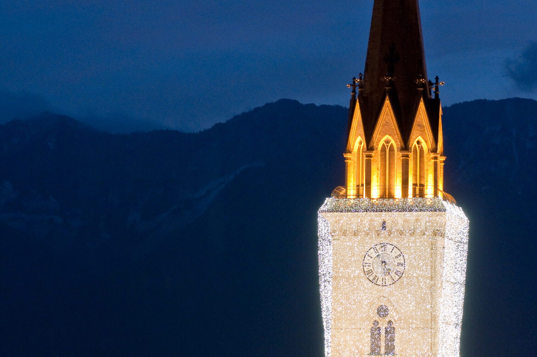 Der 94 Meter hohe Kirchturm der Stadtpfarrkirche St. Jakob eröffnet einen atemberaubenden Ausblick auf die Innenstadt in festlichem Glanz.