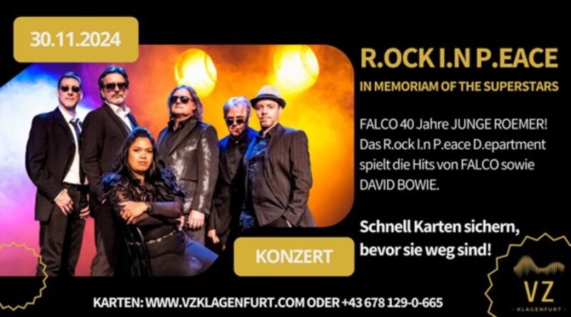 Falco 40 Jahre Junge Roemer – das R.ock I.n P.eace Department spielt die Hits von Falco und David Bowie. Am 30. November im VZ Klagenfurt.