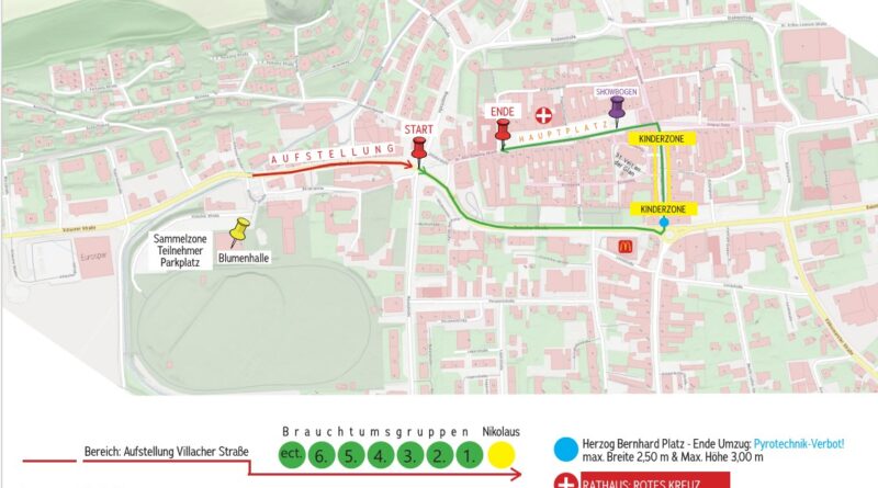 Am 5. Dezember wird die Villacher Straße (B94) ab Knotenpunkt Schießstattallee/ Hubertusstraße bis Höhe Hrustkreuzung von 18.30 bis ca. 22.00 Uhr sowie die Innenstadt im Zeitraum von 18.00 bis 22.30 Uhr für den gesamten Verkehr gesperrt.