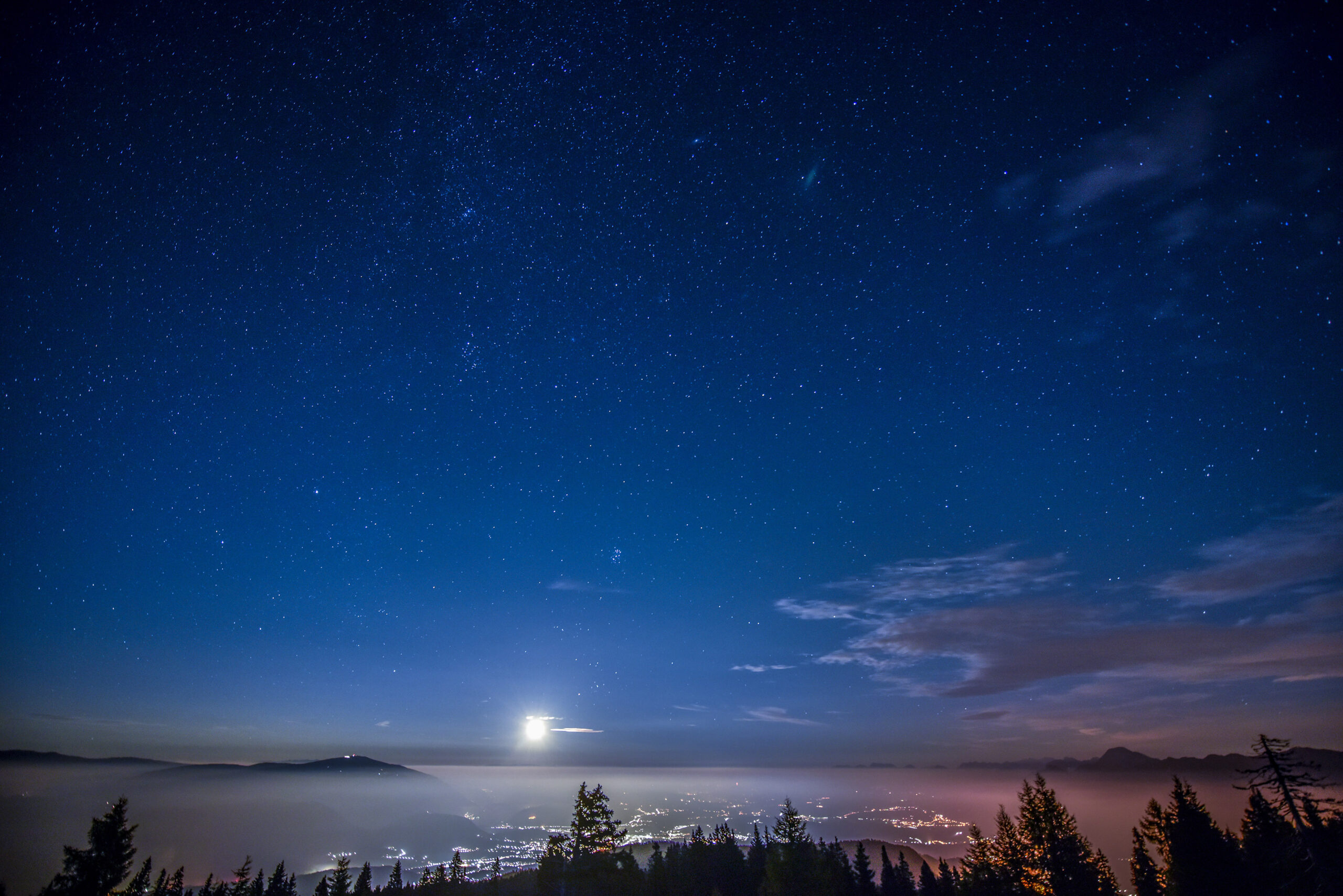 Lassen Sie sich von den geheimnisvollen Lichteffekten des Mondes in der schneebedeckten Landschaft verzaubern, am 30. Jänner