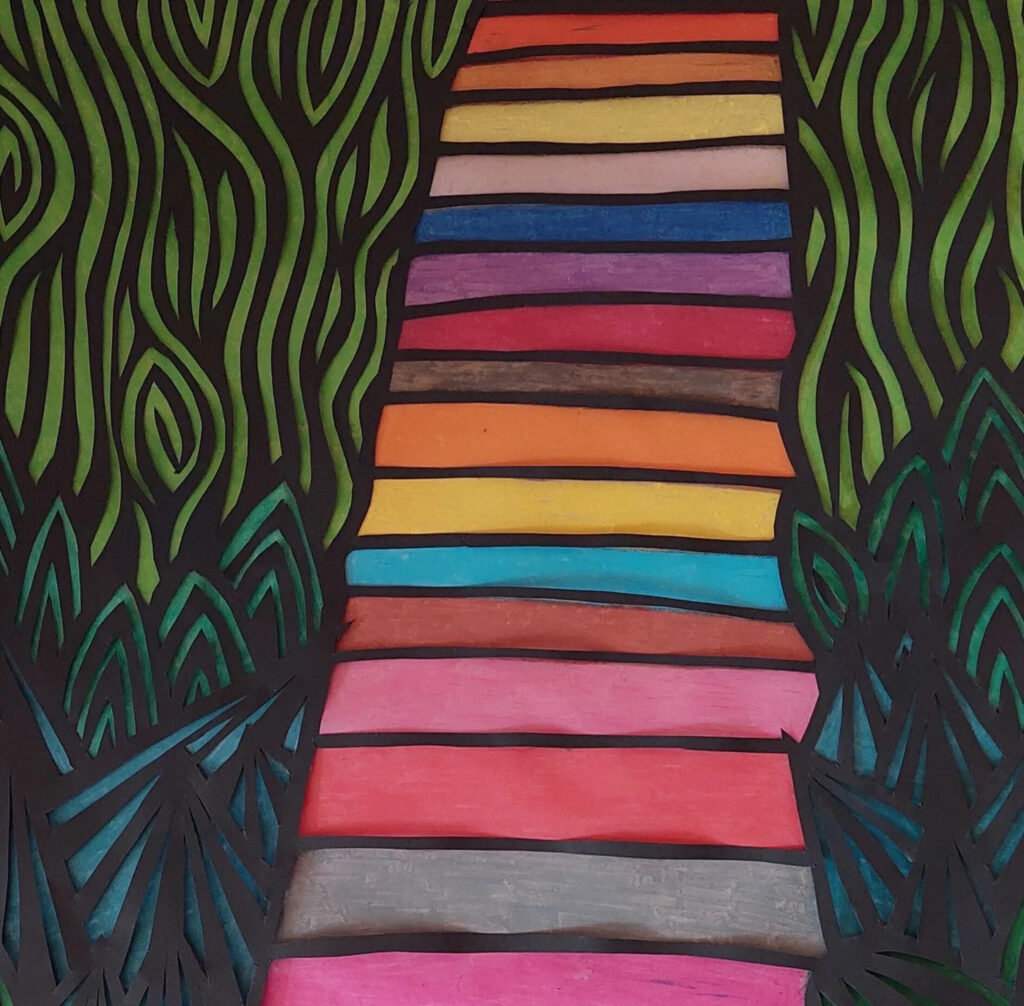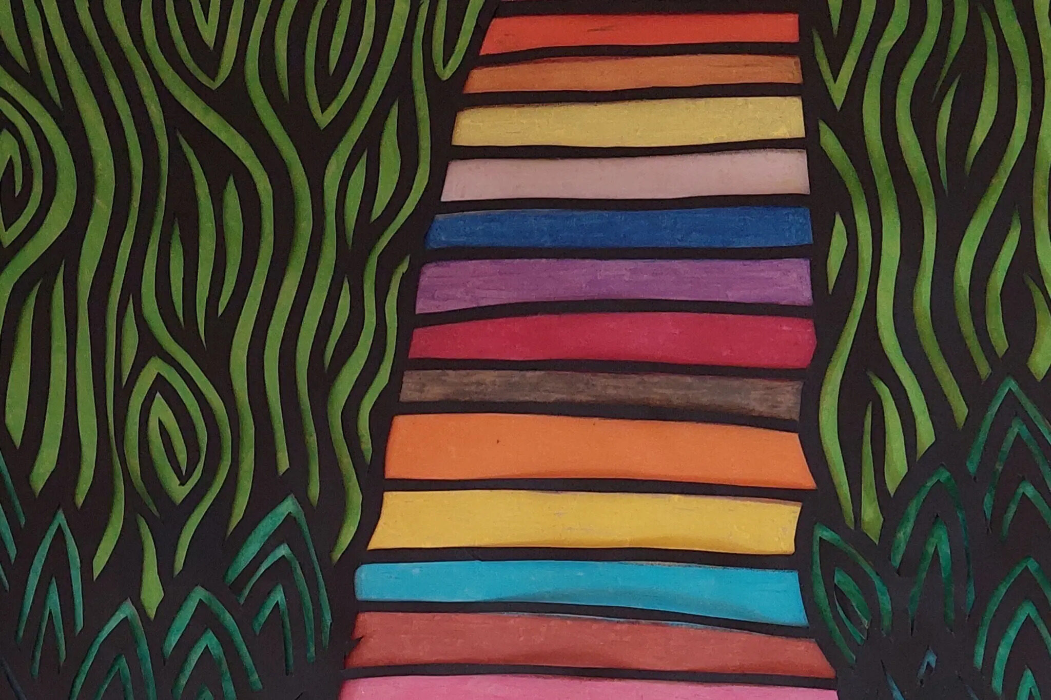 „Miteinand“ verbringen die Aussteller – mit und ohne Behinderung – nicht nur gerne ihre Freizeit, auch der Großteil der Werke sind gemeinsam gestaltet: Collagen aus Scherenschnitt und Zeichnungen.