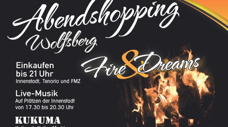 Am 3. November findet von 17 bis 21 Uhr das Abendshopping „Fire & Dreams“ in Wolfsberg statt. Hierbei ist für besondere Atmosphäre gesorgt: Statt der gewohnten Straßenbeleuchtung wird es Feuerkörbe geben, die die Wolfsberger Innenstadt erleuchten. Der Verkehr ist in dieser Zeit gestoppt, von 17:30 Uhr bis 20:30 Uhr werden die Besucher mit Live-Musik unterhalten.